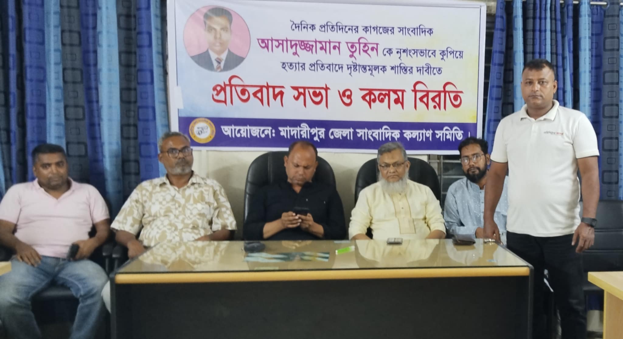 সভায় বক্তারা বলেন, মফস্বলে কাজ করতে গিয়ে সাংবাদিকরা প্রতিনিয়ত ক্ষমতাশালী মহলের হুমকি ও হয়রানির শিকার হচ্ছেন। তবুও তারা দমে না গিয়ে সত্য উদঘাটন করে মানুষের সামনে তুলে ধরছেন। দেশে সাংবাদিক নির্যাতনের বিচার না হওয়ায় অপরাধীরা আরও সাহসী হয়ে উঠছে, যার ফলেই, দৈনিক প্রতিদিনের কাগজ এর সাহসী সাংবাদিক আসাদুজ্জামান তুহিনকে নির্মমভাবে হত্যা করা হয়েছে। বক্তারা অবিলম্বে এ হত্যাকাণ্ডে জড়িতদের গ্রেপ্তার ও দ্রুত বিচার আইনে দৃষ্টান্তমূলক শাস্তি নিশ্চিত করার দাবি জানান।