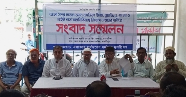 সোমবার (৭ জুলাই) সকালে এলাকার ধর্মপ্রাণ মুসল্লিদের ব্যানারে জেলা সদর জামে মডেল মসজিদের নিচতলায় এ সংবাদ সম্মেলন করা হয়।