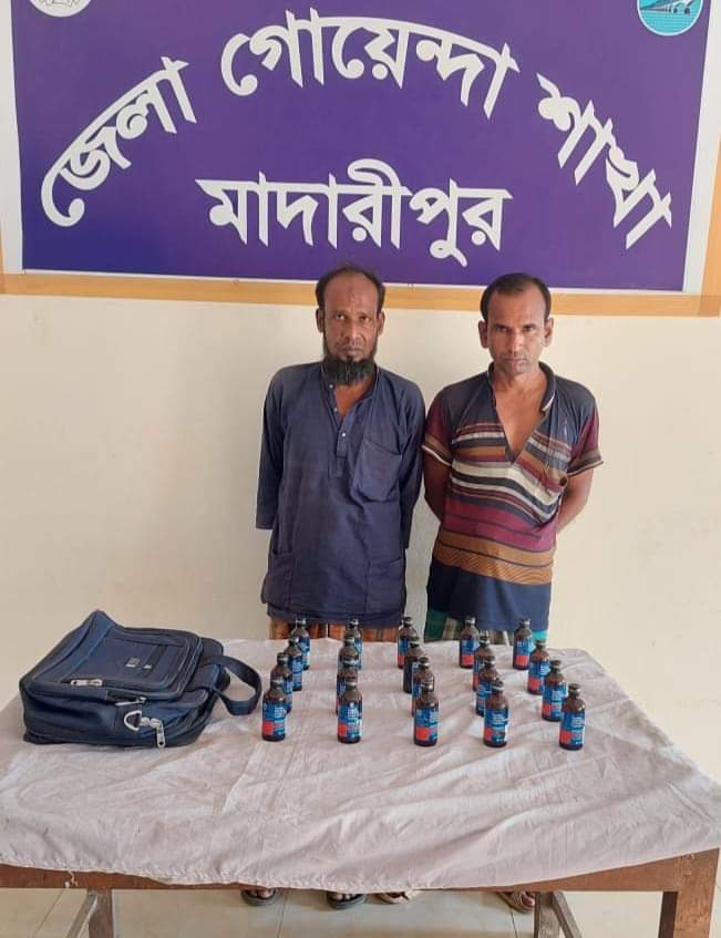 মাদারীপুর ডিবি পুলিশের অভিযানে ২০ পিস ফেনসিডিল সহ ২ মাদক ব্যবসায়ী গ্রেপ্তার হয়েছে।